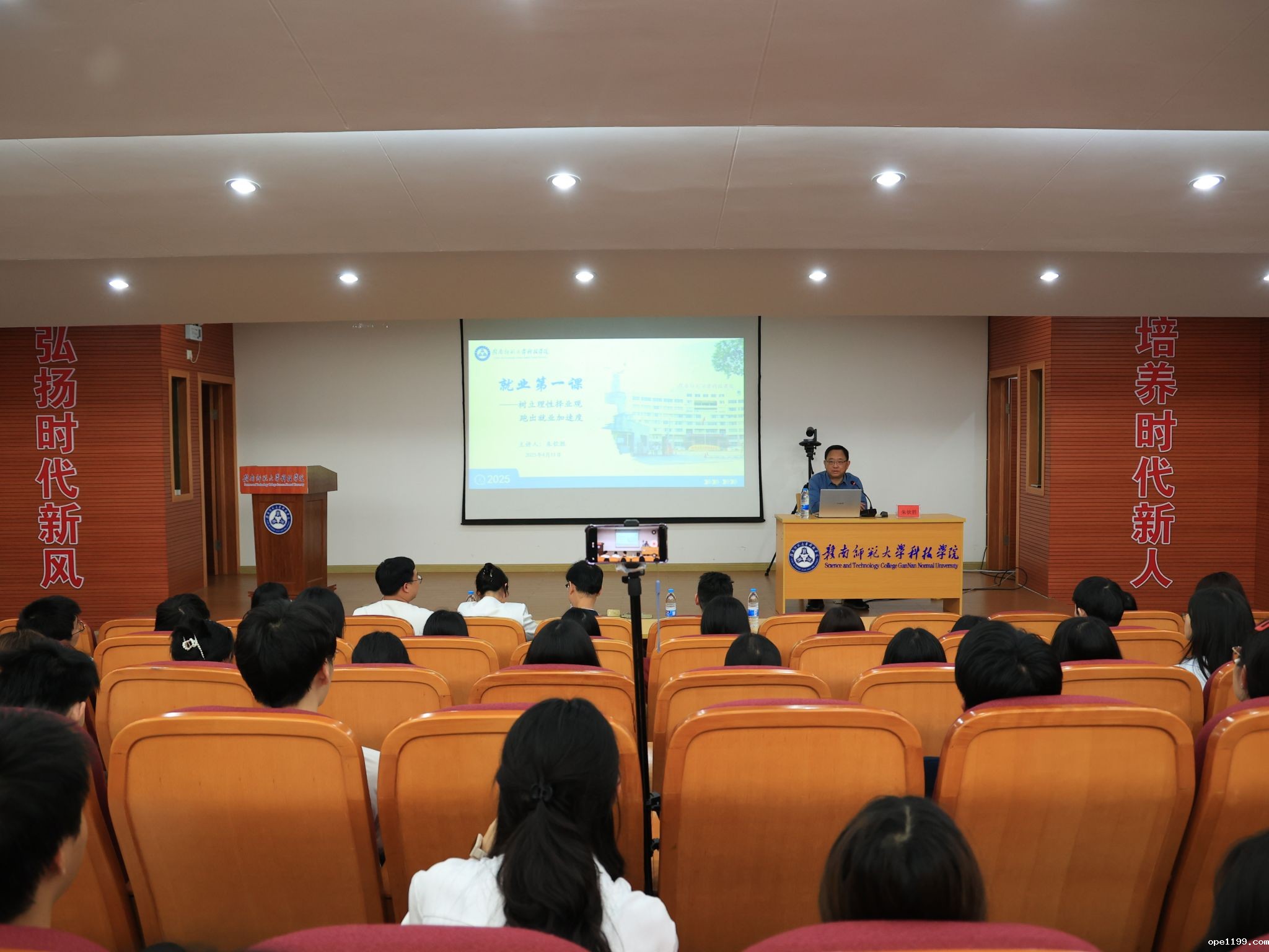 4月11日,学院院长朱钦胜在综合楼科报厅为数学与信息科学系2022级学生讲授新学期“就业第一课”,数学与信息科学系负责同志、辅导员参加。