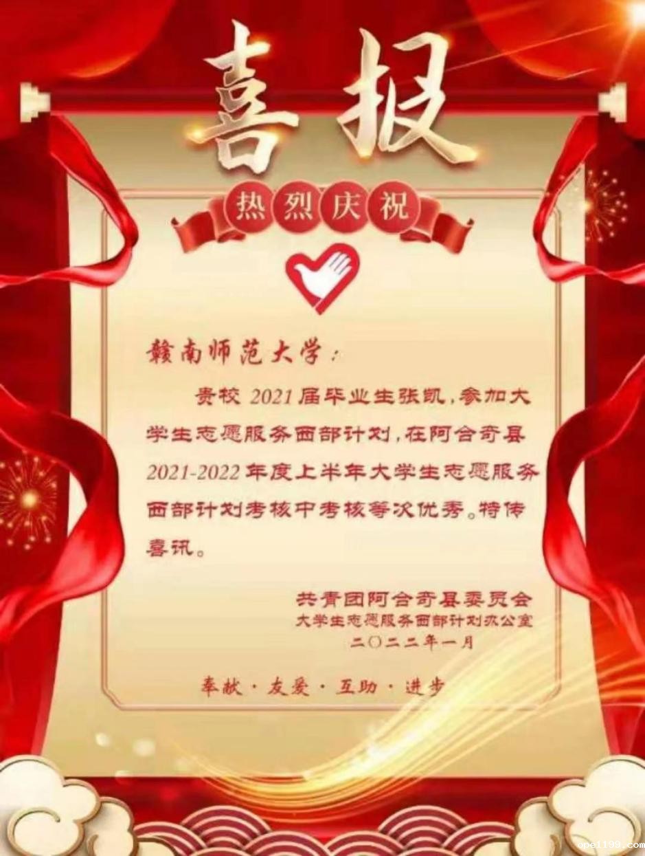 恭喜优秀的科院学子张凯同学在阿合奇县2021-2022年度上半年考核中考核等次为优秀(优秀等次占比不超过40%)。张凯同学21年6月份于我院毕业,7月底作为一名西部计划志愿者前往新疆,现服务于新疆克州阿合奇县团结小学,在学校内他主要担任一年级的班主任工作及五年级体育的教学工作,工作中他认真备课,及时与家长沟通,做好一年级学生的学籍和档案管理工作,同时做好五年级学生的体育教学工作。通过这半年的志愿服务,他对于学校的各种教学方式和当地的风俗习惯及政策有了较好的了解,后续他将继续努力,做好本职工作,发挥志愿者模范作用,努力成为一名优秀的志愿者。