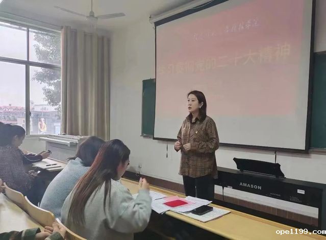 11月25日,我系在艺术楼401室开展了“学习贯彻党的二十大精神”主题宣讲。全体党员同志参加,党总支书记张婷进行宣讲。